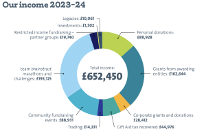 In 2024 our supporters raised £652,450 to fund brainstrust’s mission. This income remains from a diversified mix of traditional charity fundraising activity. Our funding comes from: