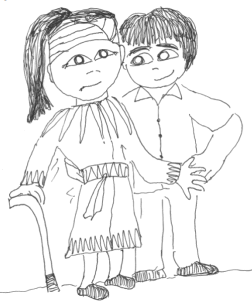 Using a story as a springboard for a discussion with children is what many people do quite naturally. When children listen to an adult reading a story, whether it be a fairy story or a factual narrative, children will often ask questions because the process of storytelling opens up spaces for conversations. When children have information, that can help alleviate fears and worries. I have illustrated the story with simple line drawings, and would suggest printing off the story for each child in the family. Children might choose to colour in the pictures, making the story book their own and maybe writing or drawing their own feelings or thoughts on their own book. Once the pages are completed, you might decide to staple the pages together to create the book.