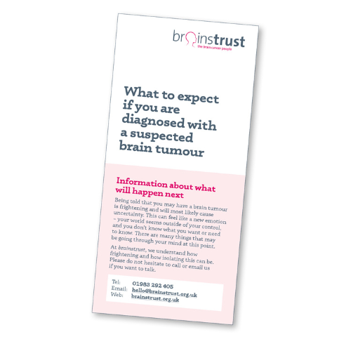 This leaflet will help you to cope with the fear and uncertainty of a suspected brain tumour. It explains what you can expect to happen next, so you can feel more informed and more in control after your scans.