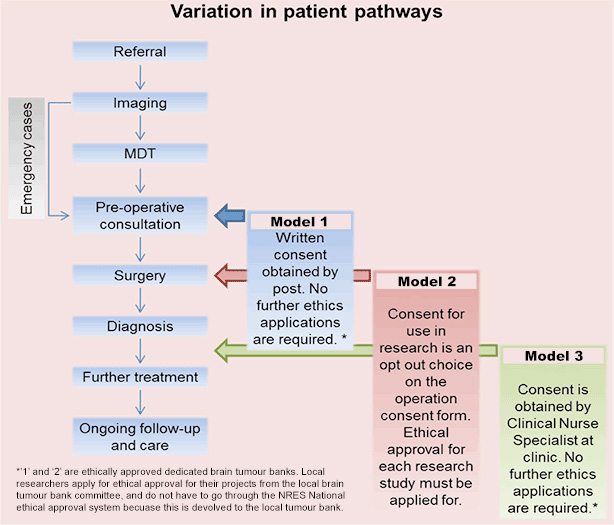 We can also share with you some of the pathways currently used to obtain consent for use of brain tumour tissue in future research:
