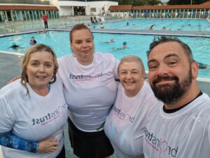 I was apprehensive but excited for the event – the fact that the tide was right out necessitating a long cold walk to the water scared me because of my mobility and respiratory issues but the camaraderie of our team and everyone else involved just spurred me on. I felt on top of the world after completing the swim especially knowing the money raised would be put to such good use. It was a wonderful event, and we are all committed to doing the same again Boxing Day 2024.