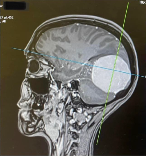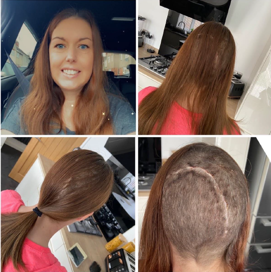 someone with me. I knew instantly that it didn’t sound good but tried to stay positive. The next day the neurologist told me that the scan showed that I had a large Meningioma in my occipital lobe, these tumours are usually benign and slow growing, but as mine was already quite big I would need surgery to remove it as there really was no other option. What a shock! I don’t know what I expected to hear but it wasn’t that. I was told the surgery would probably be within weeks, it was a lot to take in. I had bloods done there and then in preparation and cried all the way home.
